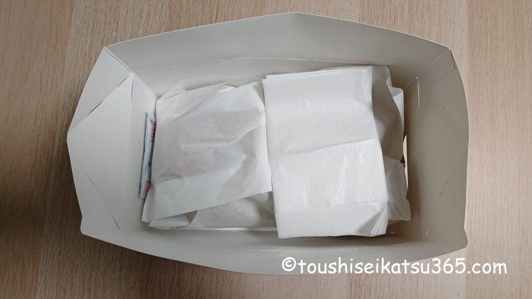 紙袋に入ったチキンナゲットを取り出し、そして、箱の一番下をのぞいてみると・・・